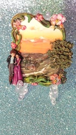 Un piccolo capolavoro realizzato interamente a mano che racchiude l'essenza di una delle storie d'amore più amate. Questa cornice è una fan art dedicata ad Anthony e Kate della serie Bridgerton. Il paesaggio della campagna inglese è stato meticolosamente modellato in argilla polimerica, creando una scena vivida e tridimensionale racchiusa in una cornice decorata.
